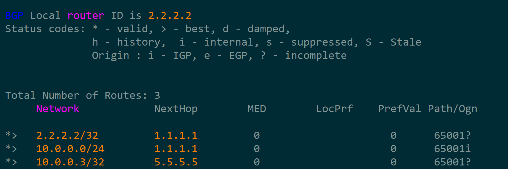 1 | bgp 65001 |