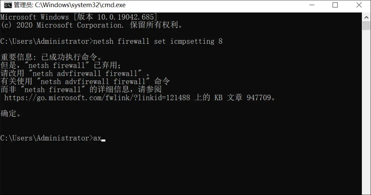 当运行以上命令时提示 “netsh firewall” 已弃用 (如下图):